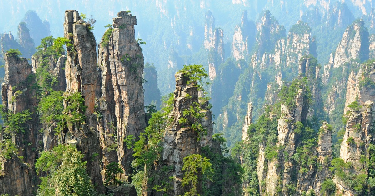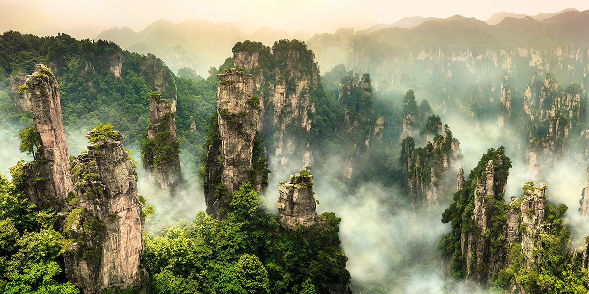 Rising from the subtropical and temperate forests Zhangjiajie has a concentration of quartzite sandstone formations found nowhere else in the world.